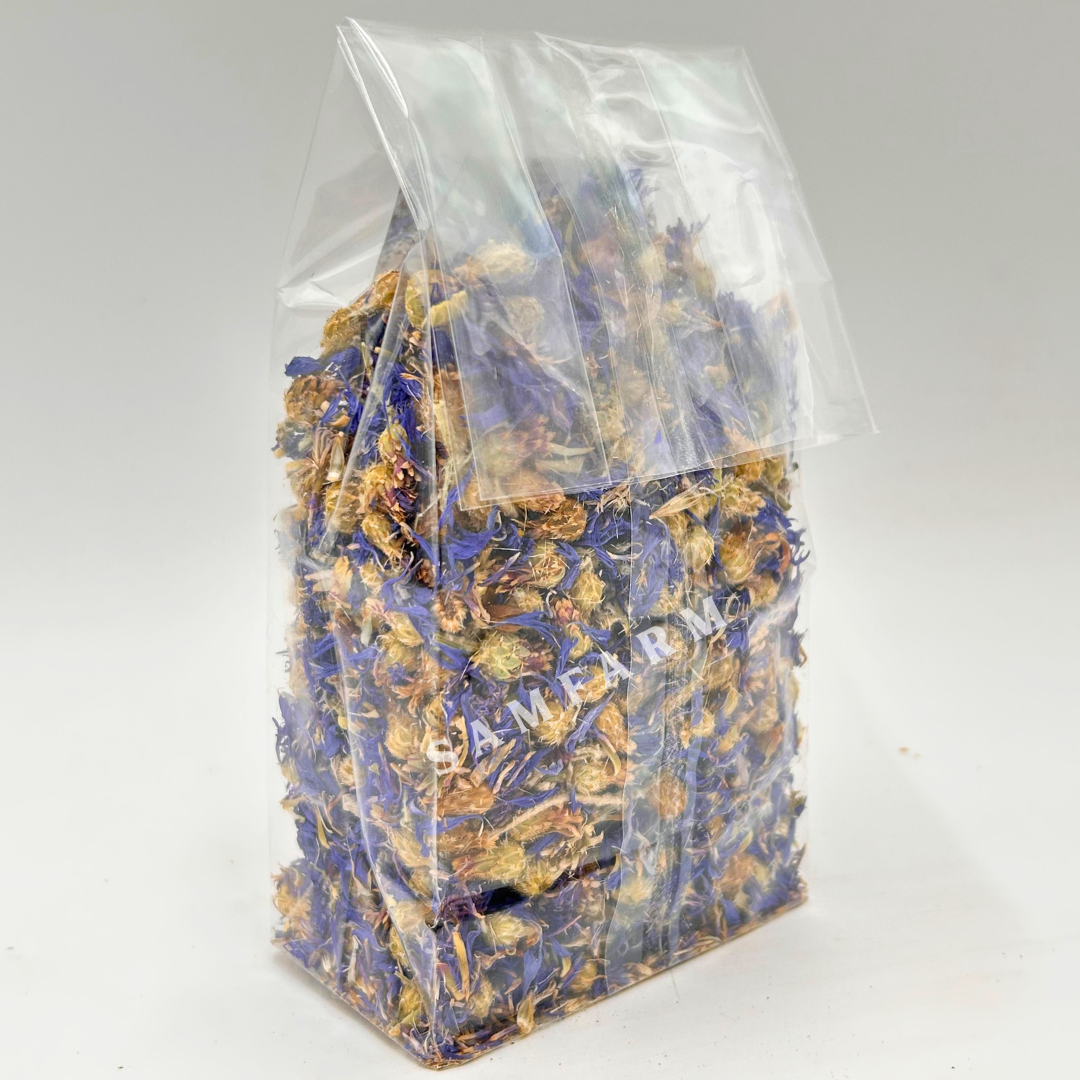Skład: suszone kwiaty chabra bławatka – materiał paszowy