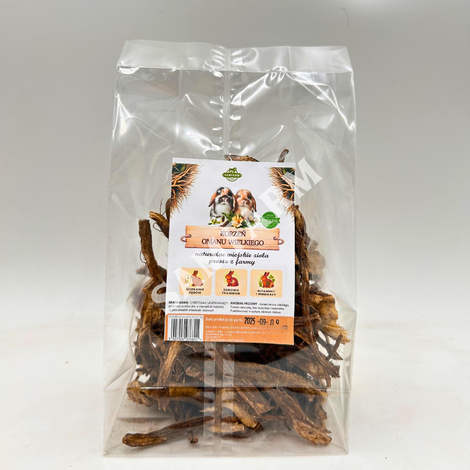 Skład: suszony korzeń omanu wielkiego – materiał paszowy