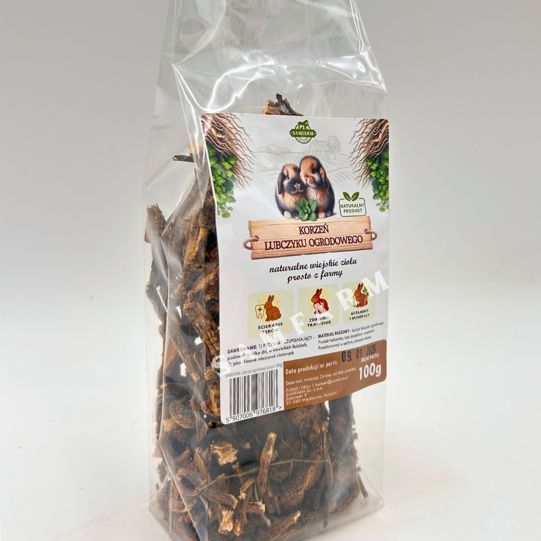 Skład: suszony korzeń lubczyku ogrodowego – materiał paszowy