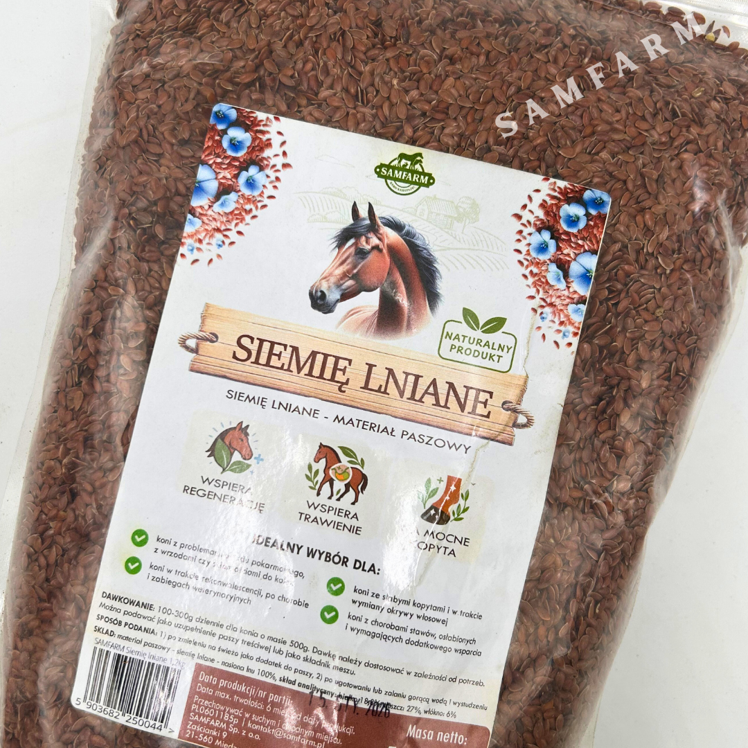 Sposób podania: 1) po zmieleniu na świeżo jako dodatek do paszy codziennej, 2) po ugotowaniu lub zalaniu gorącą wodą i przestygnięciu 3) jako podstawa tradycyjnego meszu dla koni z dodatkiem owsa i otrąb